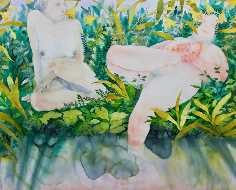 I thought that for this interview, we could focus on talking about your latest exhibition, A fourth round of applause, which took place last March at Gallery Huuto, Helsinki. The exhibition featured watercolors of naked bodies merging with various plants and, using part of your press release, “created a landscape where a utopia and dystopia were woven together to form an integrated garden.” Since I did not visit the exhibition “in flesh”, I decided that we would meet up here at Kaisaniemi Botanic Garden to achieve at least some sort of setting that one could have imagined entering while visiting your exhibition. Would you like to say something first about this exhibition?