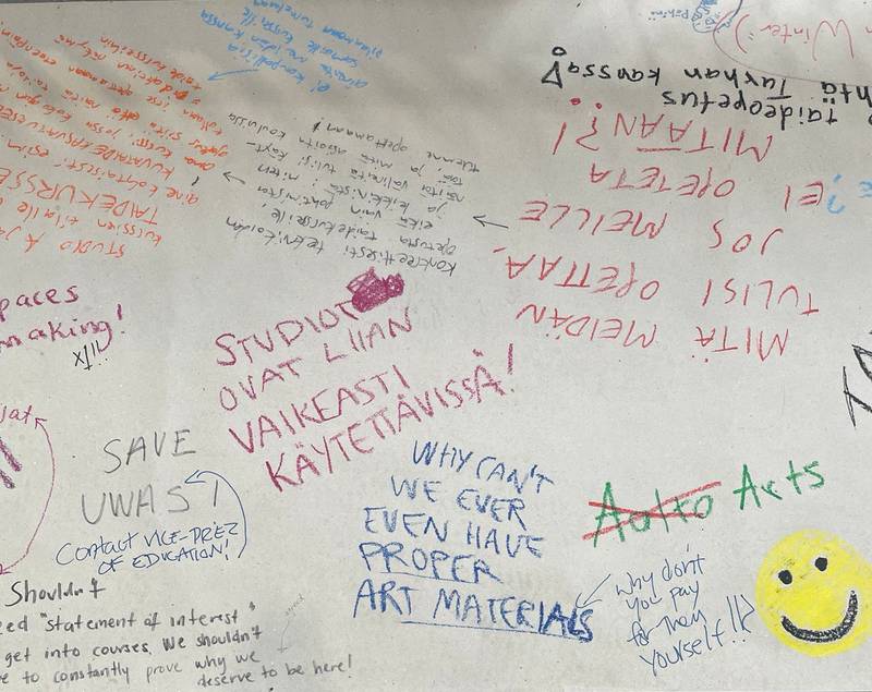 What has angered students are the recent cuts and reorganisations of the departments and programs (getting rid of some famed and popular ones like UWAS) and the inaccessibility of the Väre premises for student use. The university argues that the teaching of art is not “efficient” – too many alternative courses with too few students. And that since budgets have been cut – and are going to be cut – there have to be ‘less’ courses with ‘more’ students.