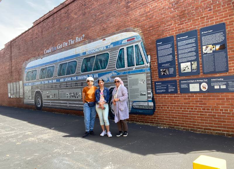 Freedom Riders National Monument, Anniston, AL, from left: Setare Arashloo, Zeynab Mohtadi, Kowsar Gowhari