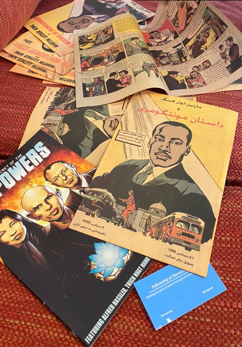 Our first stop was Greensborough, North Carolina, notable for its sit-ins and protests during the early 1960s, which aimed to end segregation in restaurants and lunch counters. Besides visiting the International Civil Rights Center & Museum, we met with and interviewed Ethan Lesley-Flad, one of the directors of the United States Fellowship of Reconciliation Program. He talked about the program’s history and its emphasis on nonviolent alternatives to conflict and the rights of conscience. Our conversation about the possibility of reconciliation in communities with a history of violence and conflict and the idea of historical reconciliation stayed with me the most. Ethan gave us an old classic comic about the Montgomery Bus Boycott, translated into Farsi. He also connected us to Civil Rights activists, current local elected officials, and Civil Rights historians who generously spent time with us and helped us contextualize the history we were exploring while observing the contemporary state of the city and the state that we met them in.