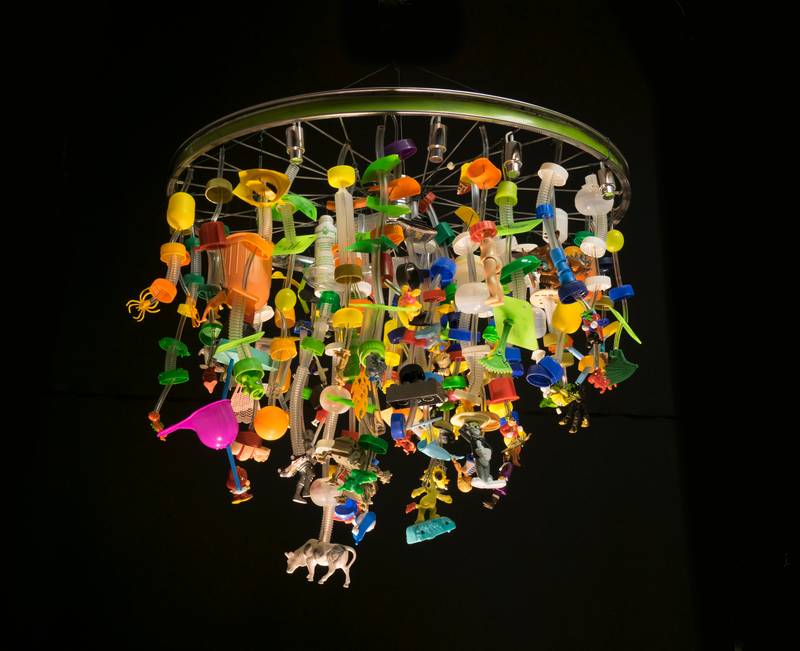 Ecological issues weren’t a part of my thinking from the beginning. I think I’m a very typical Finn in a sense; that has been only in the past ten years that I’ve woken up to these matters. It happened when I visited my son and his family in Mexico after the Pots, Sandals and Tent initiative. It took me a while to situate myself there. To familiarize myself, I started a habit of walking around and collecting all these incredibly beautiful bottle caps that I found lying around. I had bags full of them. I thought they were so wonderful that I should make something out of them, a small chandelier. While collecting all this plastic, I started researching the trash problem in the oceans. I contacted an organization in Finland that held events for collecting and cataloguing trash from beaches around the Baltic Sea. At first, they weren’t interested when I suggested I’d work with them, but they warmed up after keeping in contact with them for a year. I got in touch with people who organized diving events for collecting underwater debris. I joined them in Turku to make an installation. Again, without a greater plan of what to do, I just took a tarp with me and had this rule to start arranging the installation in the order in which the divers kept surfacing with the trash.