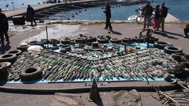 Regarding the pollution of the Baltic Sea, my approach to art is at its most philosophical. With that project, there are the divers, with gloves protecting them from cuts, digging the bottom of the sea for all sorts of shit. When the divers brought all that material to the pier, I had to find a way to make the artwork pleasing in form and simultaneously make the audience think of why was all of this junk there in the first place. What else is there? What else is there that remains hidden under the surface in our society?