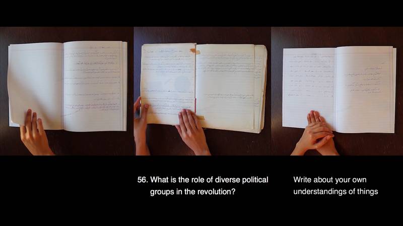 Many people of my generation in Iran are children of parents who have not only seen the 1979 revolution but have participated in it in one way or another, although these days, they keep looking for ways to minimise their roles in it or pretend they had no part in that “disaster” whatsoever. I did an artistic project called Holding a Monument a few years ago. The work was based on my mother’s notebook, made in 1979, in which she, together with her sister, wrote questions asking one’s thoughts on subjects such as the idea of political Islam; social inequality; hijab; colonialism; political independence; their role in the revolution; martyrdom; the role of universities and different institutions, etc. My mother and aunt responded to the questions and then passed the notebook to their friends to write down their responses. I used this notebook as a blueprint for making two other notebooks with the same inquiries. I gave one to my friends who were born after the revolution. The other one went to the same people who wrote in the original notebook, those who had taken to the streets with revolutionary values: asking for equality, independence from the West, standing up for the rights of the working class, etc., all of which have been put to the test in the course of the last 40 years. Their answers to the book’s inquiries were apologetic, filled with guilt and regret, and “this is not how we wanted things to turn out.” They ask for sympathy, which I don’t have much for them. You see, I think of their generation as a highly arrogant one. It’s not that they didn’t “get it” back then and made a mistake. The problem is that they still don’t “get it”, that understanding without which all social movements are doomed to fail. I’m referring to our flawed idea of “freedom” as something that is limited to our own views only. Whereas we truly believe in freedom when we want it for our adversaries as well. I asked my mother recently whether she joined in with other women in the protests against the hijab law when it was introduced shortly after the revolution. She said no. Why? Because she adopted the hijab voluntarily and didn’t see the problematics of others being obliged to do so.