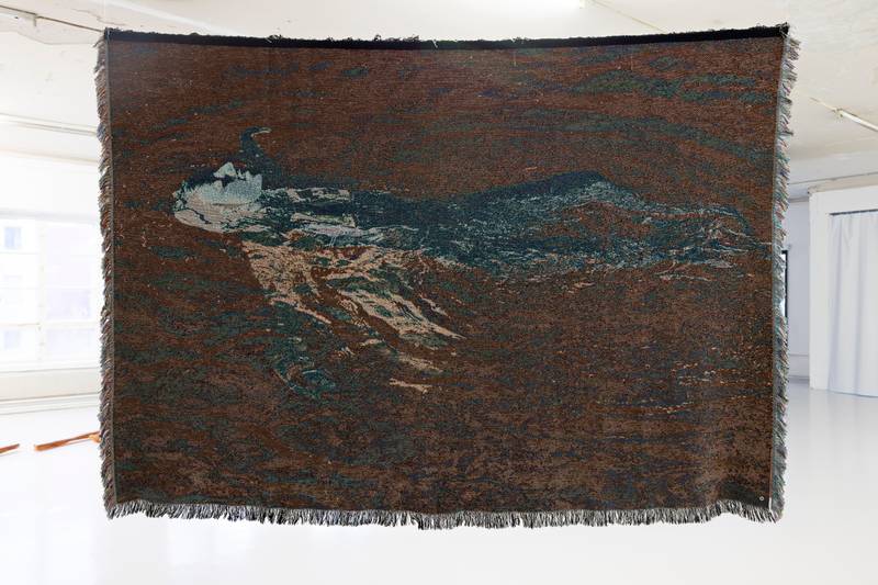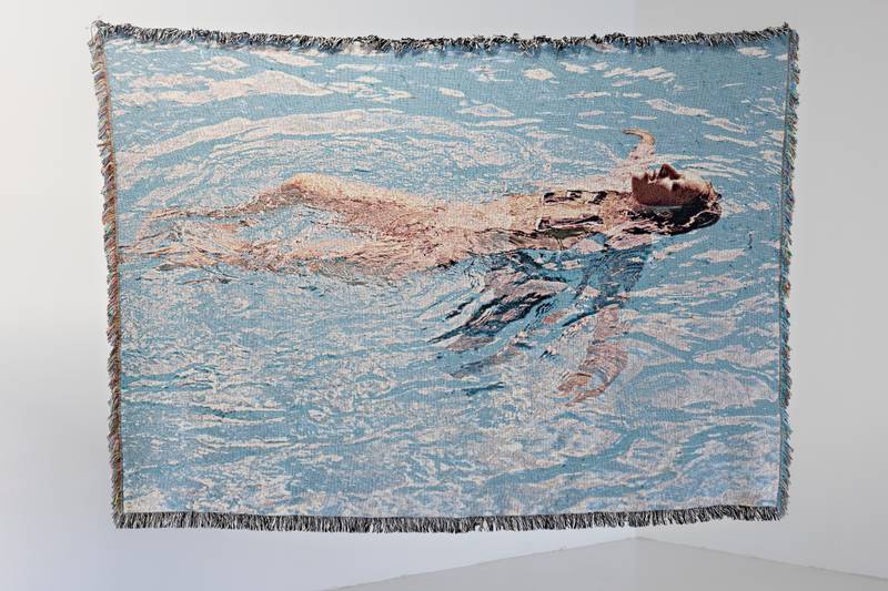 Similar fluidity of forms is also highlighted in BLESS N°61 Swimmingtogether Bathing Blanket (2017). BLESS is a project that questions boundaries related to art and design, objecthood and usability, and private and public space.13 Swimmingtogether depicts a person enjoying an uninterrupted moment with water. The swimmer is almost completely submerged and seemingly floating with ease. The moment where the body touches the water, the feeling of melting, evaporating or dissolving becomes visible. The artist statement questions ‘What exactly are the outlines of the individual (experience)?’ This is meant to acknowledge the medium of the work as a blanket. The fabric, manufactured with interwoven threads, is an attempt to imply the larger interdependencies that inform the collective human experience. The relationship between the fabric’s interwoven construction and universal interconnection is less visible in the work unless read through the artist statement or communicated through supplementary material.