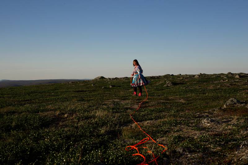 My communal identity is saying: Why are you doing this? Why aren’t you just taking care of the kids, sewing traditional clothes, and helping your family live an everyday Sámi life? But I am an artist, and I need to express things. In the Sámi community, I think we have this idea that it’s not good to tell everything. If you tell everything, it disappears. So how can I do this artistic thing without exposing everything? There is a bit of a dilemma. But the yoiks that I make are not personal yoiks. I use the musical style from there, but then I yoik about more abstract things. Without telling so much, I’m just yoiking from my experience, which makes it mine.