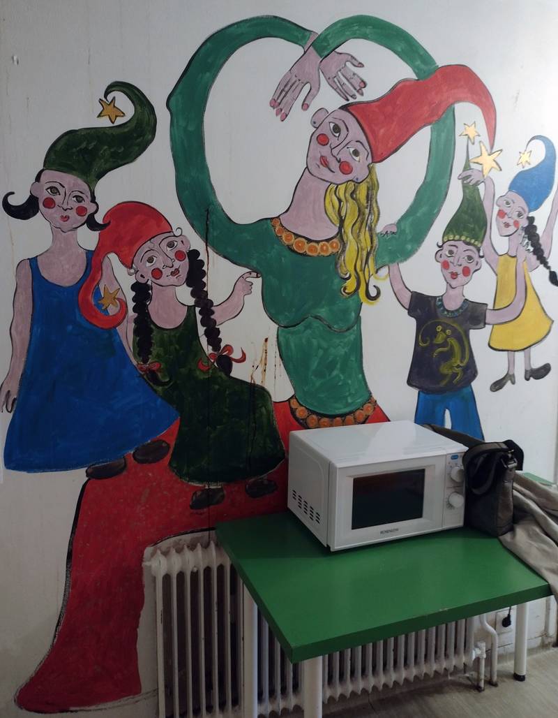 Painting at the Emergency Accommodation Center Alppikulma, Helsinki. Artist: Elviira Davidow