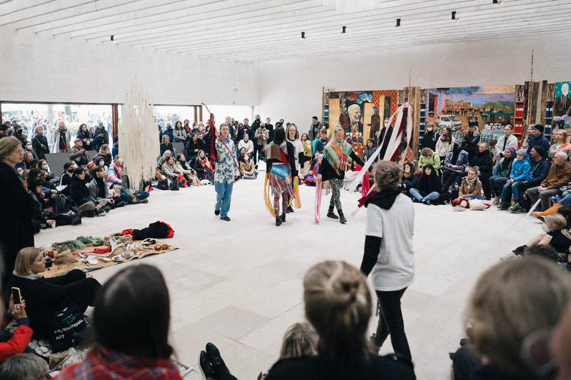 From 2015 to 2019, I worked with Hanna Nyman as the co-director of the Baltic Circle International Theatre Festival in Helsinki. In 2017, Finland celebrated its 100th anniversary as an independent state, and the Indigenous Sámi people marked 100 years since the first Sámi conference that began political organization across Sápmi. There was a particular momentum to raise discussion about colonialism in Finland and the Nordic countries, so we commissioned a new work from Pauliina Feodoroff – a Skolt Sámi director, artist, and nature guardian – and invited her to curate a discursive programme at the festival on the history, current situation, and rights of the Sámi people. That year Baltic Circle Festival hosted Vuosttaš álbmogat / First Nations – a programme of works consisting of a documentary theater performance by Feodoroff, Maryan Abdulkarim and S. Nousiainen, a discussion in the form of a Skolt Sámi village council meeting Sijdsååbbar in collaboration with Snowchange Cooperative, an exhibition by painter Anders Sunna and photographer Michiel Brouwer, a film screening of Indigenous films, and Vuosttaš álbmogat klubba – a club dedicated to Indigenous music. Vuosttaš álbmogat asked what Indigenous rights and self-determination mean and how to repair the wrongdoings caused by colonialism. How to revive Indigenous peoples’ lands, waters, cultures, languages and bodies, and what role art could play in the revival. During the process, an important question arose: how can the representatives of colonizing and colonized cultures work together as equals to achieve common goals and objectives? This question has been later processed (and continues to do so) in embodied ways with Pauliina Feodoroff and her Matriarchy working group (Biret Haarla Pieski, Gáddjá Haarla Pieski, Satu Herrala, Hanna Parry, Outi Pieski, Eséte Eshetu Sutinen), who each already collaborated with Feodoroff in the making of Vuosttaš álbmogat.