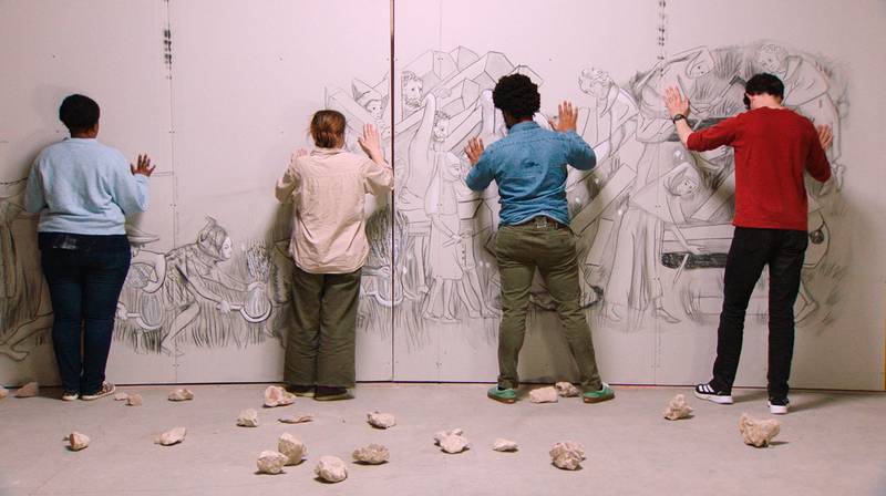 Adelita Husni Bey, These Conditions, 2022, film still, three-channel high-definition video, 35:46 min. Courtesy of the artist and Castello di Rivoli collection.