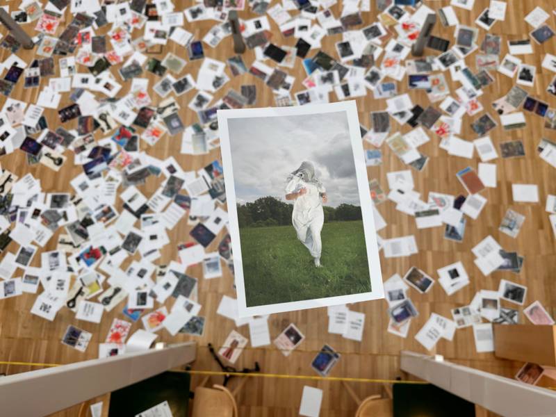 Artwork by Phoebe Walton as found in the exhibition display pile. ABSENCED. Slottet, Malmö City Library, Malmö. Photo: Mansi Kashatria