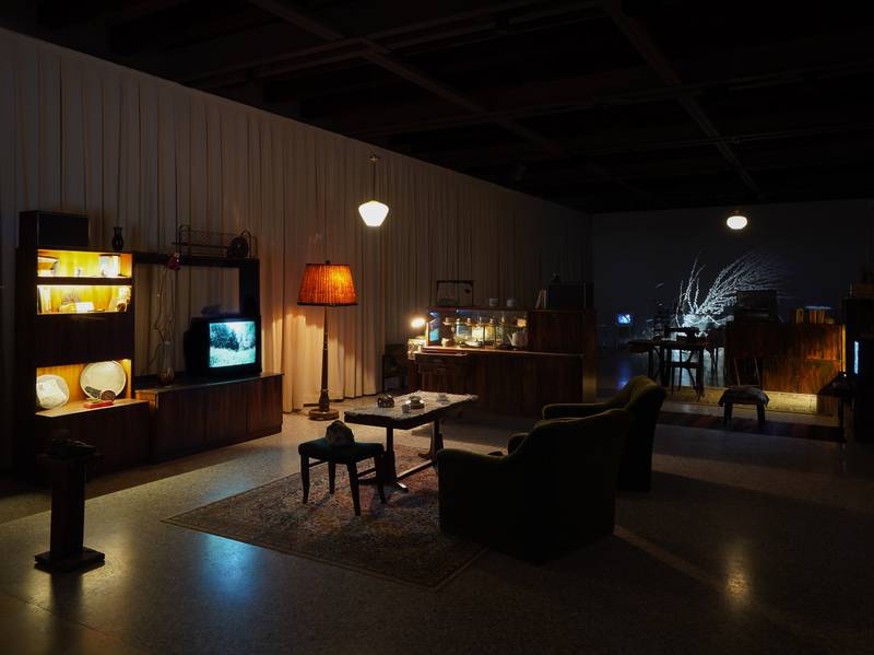 The words of Nadezhda were the first thing I heard entering the Bulgarian Pavillion in a room, lights low, with a distinct scent, reminding me of the same smell I encounter each time I enter my grandparents’ house full of the 70s and 80s furniture produced in the Eastern Bloc. The installation, set up into three sections—a living room, a bedroom and a kitchen—invites audiences to sit on the couch, touch the bed, open the fridge. And to listen.