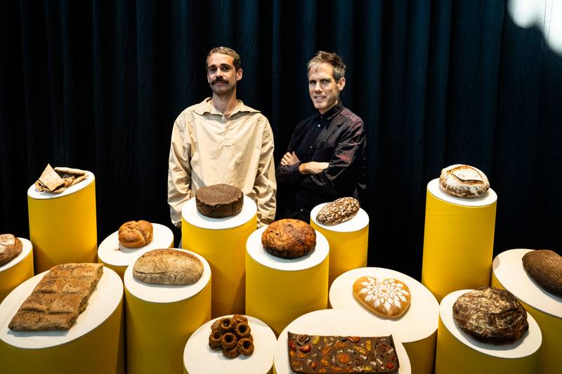 Cooking Sections: Daniel Fernández Pascual and Alon Schwabe with the bread display at the Maaleipä Feast on September 21, 2024