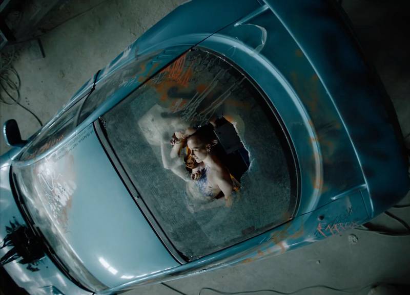 The promo video is directed by Taito Kawata, known for the first Finnish Netflix production Dance Brothers and his commercial work for brands like Stockmann and Lumene. It has a separate working group of 17 people, most of whom seem to be cisgender. The video is set in an industrial hall that seems to have been carefully made to look messy. Two masculine bodies are crawling in a pile of dirt, perhaps trying to claw their way through it. The soundtrack is ultracool techno that creates a detached feeling of a hyper-urban non-space. It has muddled up slogans, repeating while we also see the words on the screen. It asks “who is architecture made for?” and cuts to a sleek tracking shot of two athletic, skinny, white, masculine bodies caressing each other and drawing on each other’s skin on the backseat of a derelict sports car. The camera approaches through a hole in the roof of the car. It is hard not to be cynical about asking such a question as “who is architecture made for?”, and then ostensibly answering it with an image of people with white, masculine, thin, athletic bodies. Okay, they are trans, but do these bodies otherwise actually deviate that much from the norm with which modernist buildings were built with in mind?