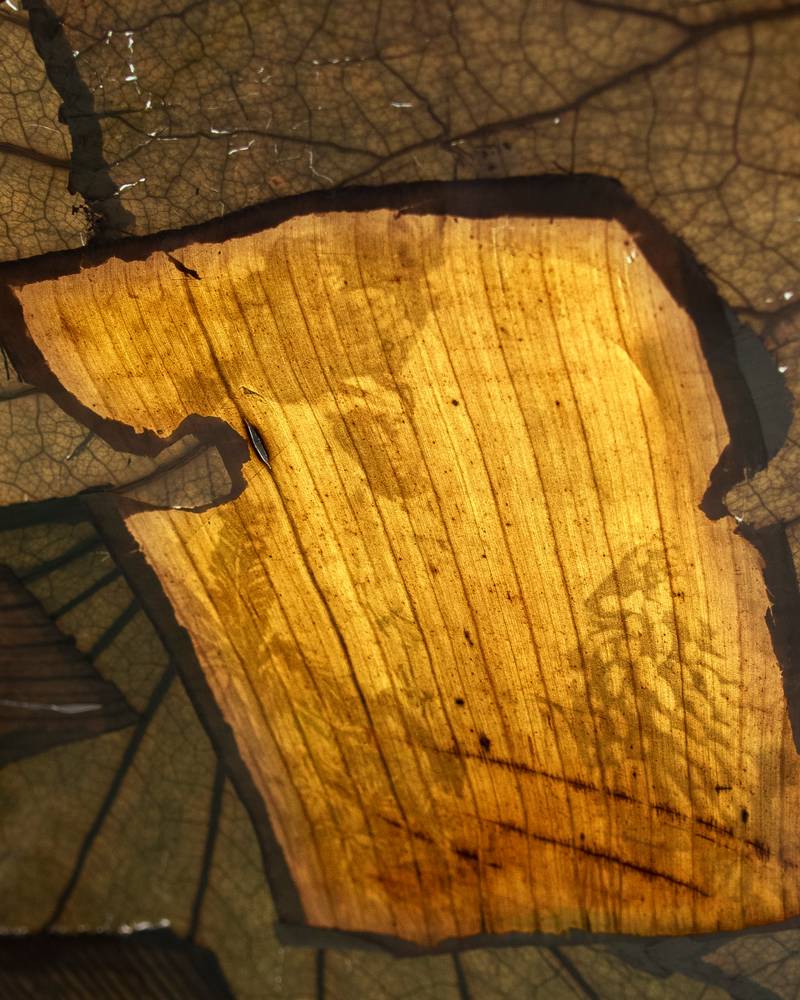 Even elements like the shadows in the installation—which emerged naturally from the lighting—speak to this play of value and perception. Historically, the banana leaves themselves were considered more valuable than the fruit because they provided shade for crops like cacao and coffee. These shifting ideas of value, and how they shape our relationships with plants, people, and histories, are central to how I make work.